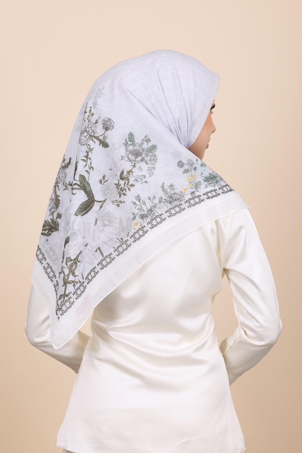 Elevate your look with this beautiful printed bawal square hijab from KLASIK RAYA. Whether it's a casual outing or a special event, this hijab is sure to complement your style effortlessly. Remember to avoid dry cleaning to maintain the quality of this Cotton Voile piece.